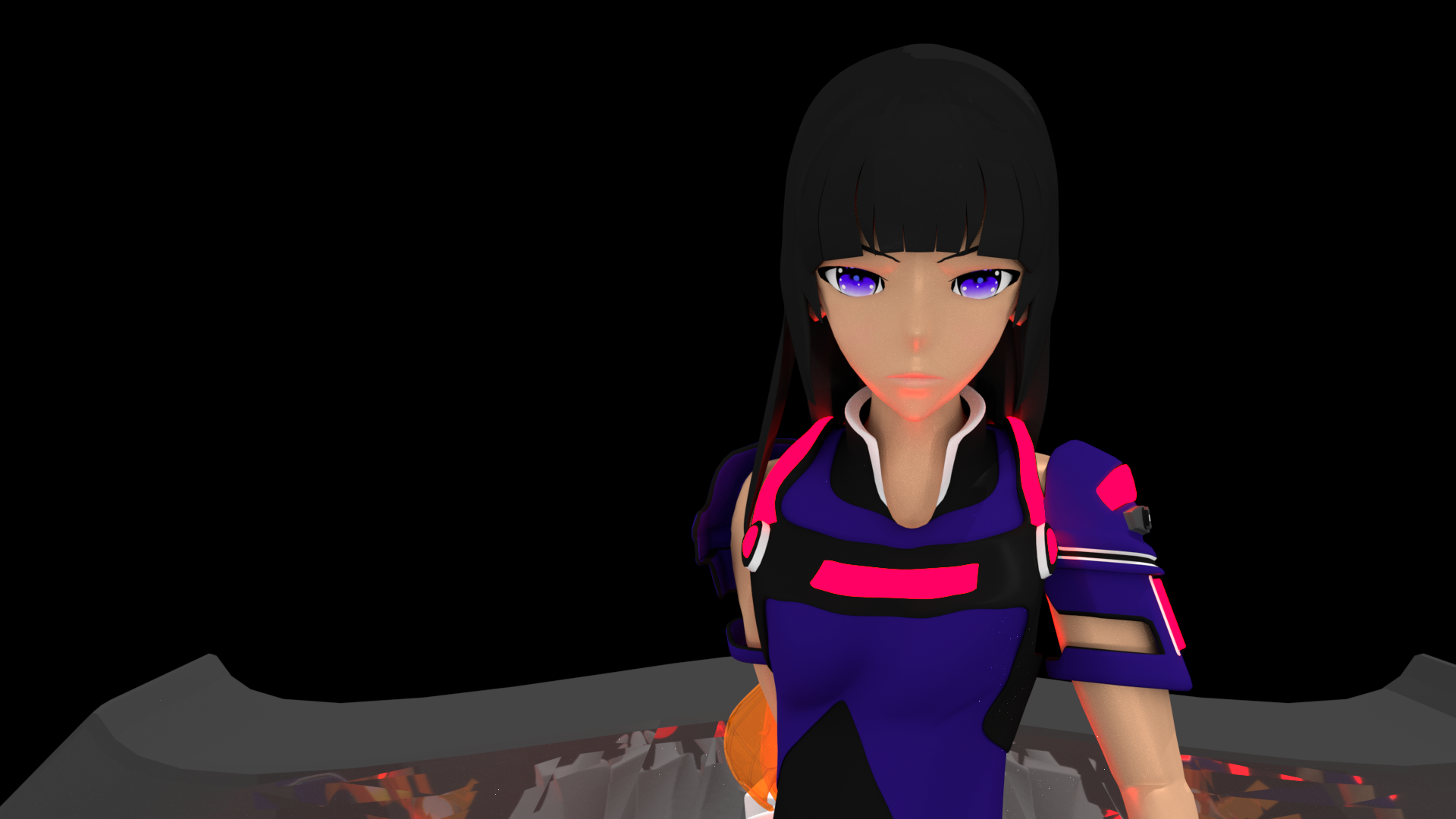 An animated video of 'Gwen' cutting out the lights. Modelled, animated, and rigged in